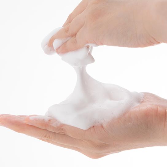 2. テニスボール大の泡を手のひらに噴射します