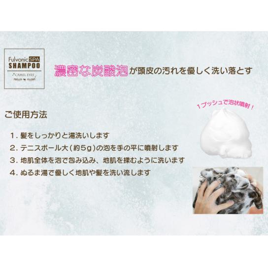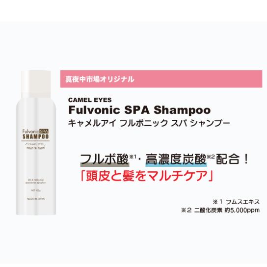 まつ毛にハリとコシを与えるまつ毛美容液『キャメルアイラッシュエッセンス』でおなじみの成分・フルボ酸*でシャンプーを作りたい!という真夜中市場+バイヤーの企画・構想から1年かけて完成した「キャメルアイ フルボニック スパシャンプー」。ハリとコシのためのフルボ酸*にはアミノ酸・ミネラル・ビタミンの有機成分が多く含まれ、潤い・保湿を髪と地肌へWの効果を発揮。頭皮ケアや、洗浄することで気になる年齢臭へアプローチします。