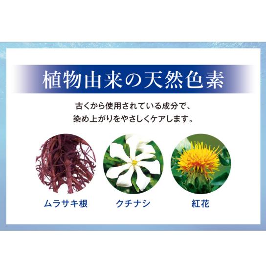 従来の染料成分に加え、水にも油にも溶解する「浸透促進成分」を新たに配合することで髪への浸透力をアップさせました。