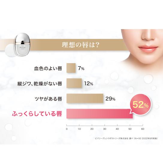 また、ハリと保湿のリッパーフェクション※1や、発酵ローズハチミツ※2、ぷるんとハリのある唇のためのシムスリーディー※3、ボリュリップ※4、ハイロリップ※5などの成分を配合。マスクで口元が隠れている間に美容施術レベルの集中ケアをして、自信が持てるプルンとハリのあるすっぴん唇へ。
