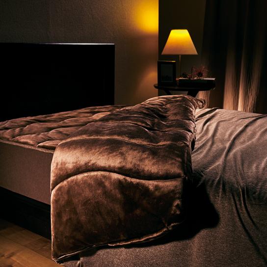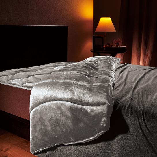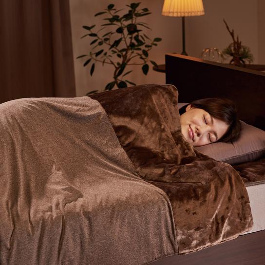 その熱は中綿にためこまれ、ご自身の体温で毛布が暖まるサイクルが生まれます。蒸れにくくて快適なあたたかさを保つことで、快眠へと導いてくれます。