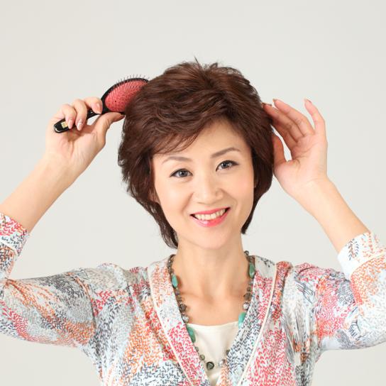 ウィッグ裏側にある4ヵ所のピンを分け目にそってのせてください。あとは、仕上げにブラシで馴染ませます。