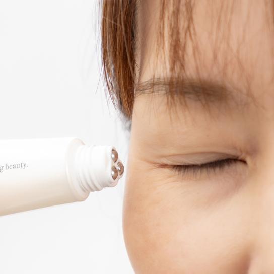 ①チューブを軽く押し、美容液を出して、ローラーで顔全体に塗り広げてください。
