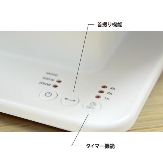 電源を入れるとすぐに暖まるほどパワフルなのに、消費電力はたったの400W。400Wで1000Wに匹敵する暖かさを生み出してくれます。