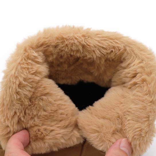 内側には毛足の長いふわふわのボアを使用。その上から厚手のウレタンスポンジと表生地の3層構造で仕立てているので、冷気を防いでくれます。