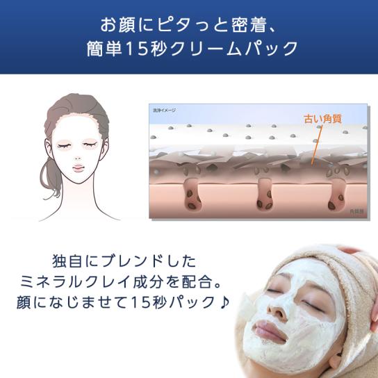 TBCサロンでも使われる独自にブレンドしたミネラルクレイ成分を配合。お顔にピタっと密着し、15秒クリームパックをすることで、通常の洗顔では落としきれない毛穴に詰まった皮脂や、厚くなった古い角質を吸着し、透き通るような透明感のある肌へ導きます。