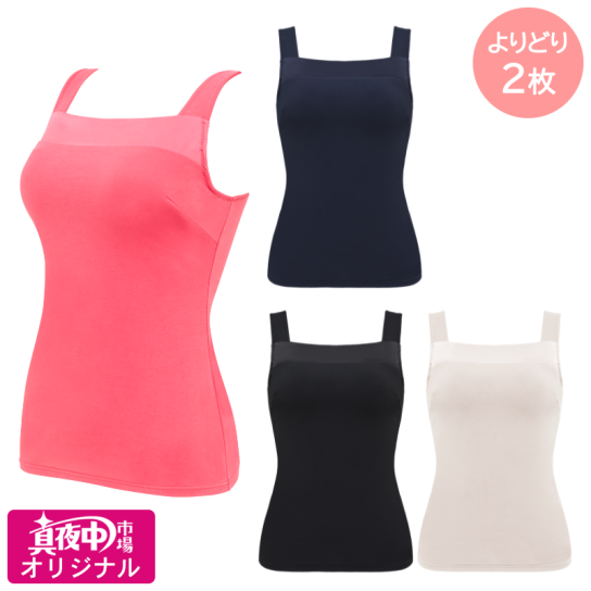 肩紐は下着特有の縫製から、見えてもOKな仕立てに。正面・背面ともベアトップのように直線的にして、アウターと合わせやすいデザインにしました。さらに、胸元には人気のサテン生地を採用して高級感を演出。胸元のサテンをのぞかせる着こなしだけでなく、これ1枚でも気軽に外出できるしっかりとしたデザインです。
