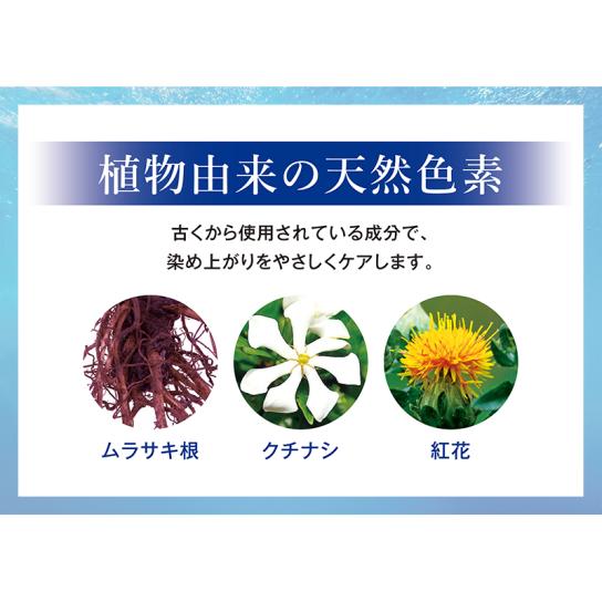 ●不使用:ジアミン系染料、タール系色素、鉱物油、パラベン、合成香料、動物性原料