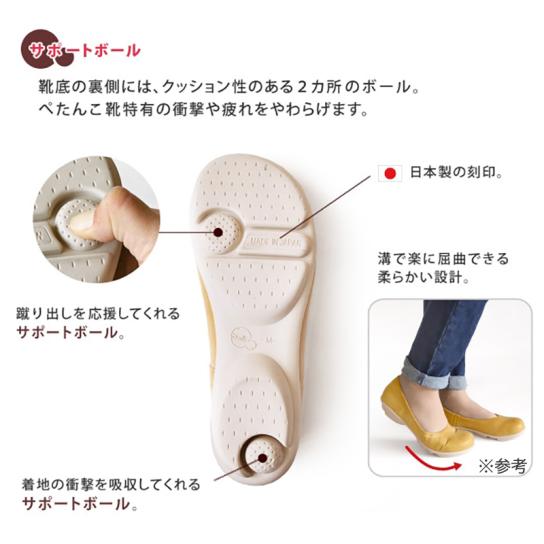 かかと部分のボールは着地の時に少し動いて着地の衝撃を吸収・分散してくれます。指の付け根部分にあるボールは弾力性があり、足の蹴り出しを応援。この2つのサポートボールが足を前へ前へと進みやすくサポートしてくれます。