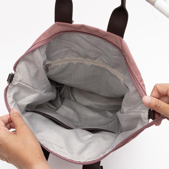 柔らかめの底板で型崩れしにくく、肩に優しい幅広ストラップ付き。普段使いから旅行まで、行楽シーズンにぴったりの頼れるバッグです。