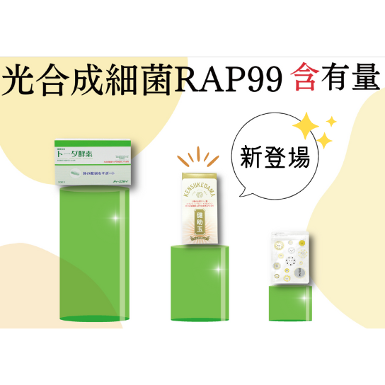 「光合成細菌 RAP99」をもとに、3種の必須アミノ酸、乳酸菌を配合。健康維持のために何か試したいなと思っている方へおすすめのサプリメントです。