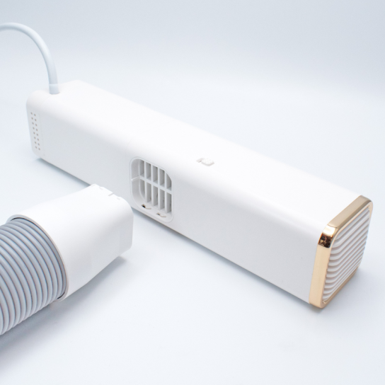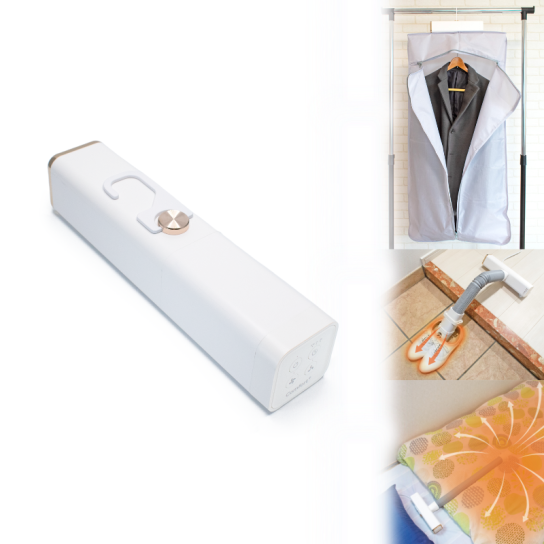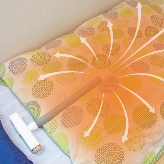 布団、衣類、靴の乾燥ができるコンパクトサイズの乾燥機です。雨の日や冬の寒い日で乾きにくいとき、花粉などで外に干したくないときなど、日々の様々なシーンで活躍!布団に使用するときは、ノズルを伸ばして布団の中央に設置し、スイッチを入れるだけで温風が広がります。温風は「弱(約70℃)」と「強(約80℃)」の2段階から選べます。