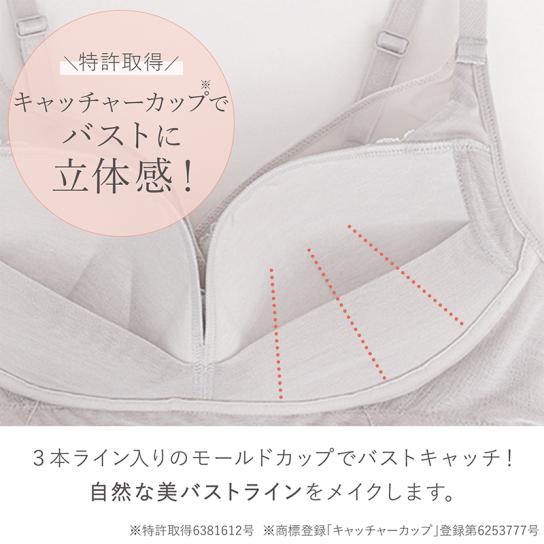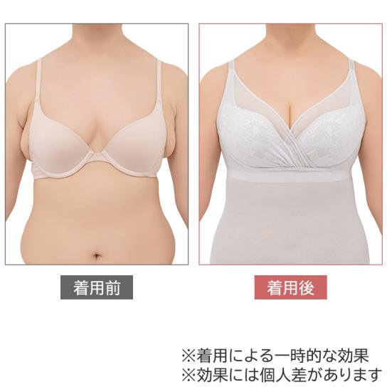 ワイヤーなしでもバストをしっかり引き上げて整える独自構造を採用。カップ部分は持ち上げて寄せる3段階の厚みがあり、デコルテまでふっくらとした印象に。また、脇高設計で気になる脇のお肉もすっきり。ラクな着心地なのに、自然で若々しいシルエットを演出します。 -