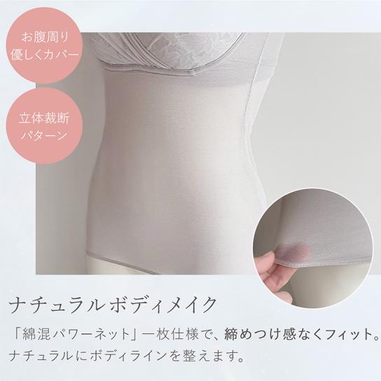 補整力の要となるパワーネットに綿を混ぜることで、吸水性と速乾性がアップし、肌当たりもなめらかに。これからの重ね着で蒸れやすい季節も快適に着用できます。また、よく伸びる生地が体にやさしくフィットし、自然なラインに整えます。立体裁断パターンで窮屈さを感じにくいので、日常使いにもぴったりです。