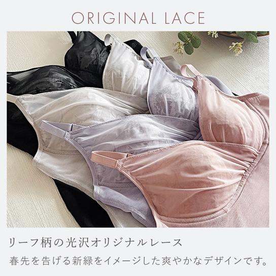 レースを透かせたシアーデザインの「ナチュラルフィットブラキャミ」は、着るだけで体型補整をサポートするブラデリスNYの人気アイテム。今回初採用の綿混パワーネットは綿混素材の着心地とパワーネットの通気性を両立し、オールシーズン快適。ノンワイヤーでもしっかりバストを整え、毎日のインナーとして活躍します。