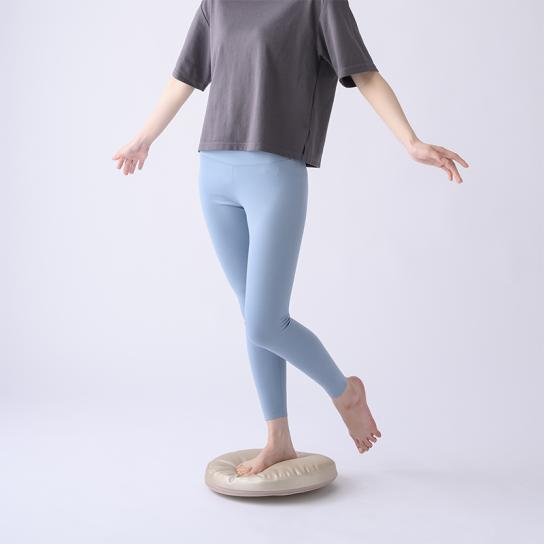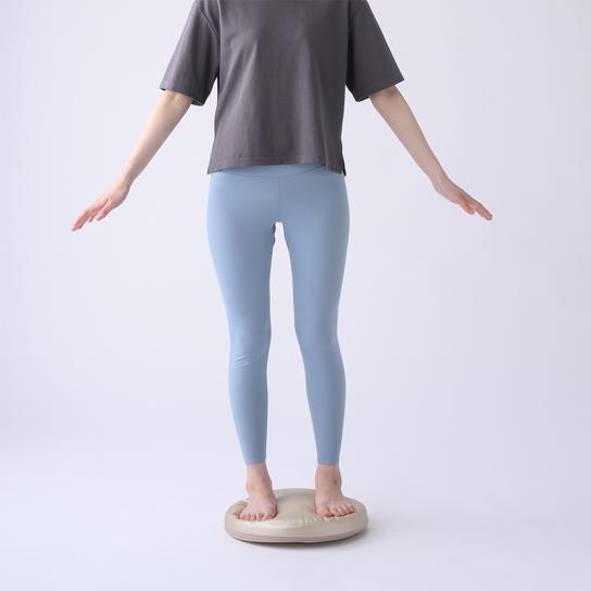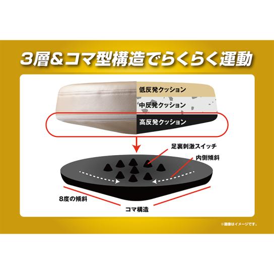 底面に約8度の傾斜がついているため、足踏みすることで自然とバランスを取ろうとし、下半身と体幹を同時に鍛えることができます。低反発素材が砂浜のような感触で、関節への負担を軽減。さらに、内蔵された9個の突起が足裏に心地よい刺激を与え、自然と続けたくなる気持ちよさです。