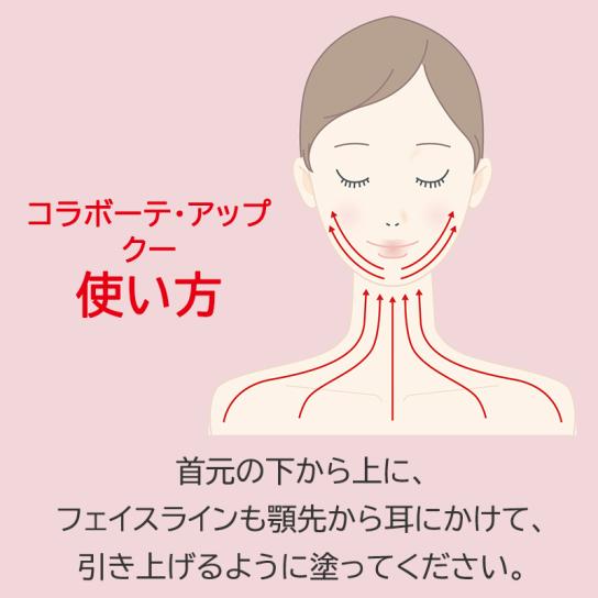 顔よりも皮膚の薄い首はデリケートで汗をかきやすい部分。だからしっとりしているように感じられても実は乾燥していることもよくあります。「コラボーテアップ・クー」は、年齢の表れやすい首元とフェイスラインにハリと弾力を与えて若々しい印象に導くため、2年の歳月をかけて開発されました。