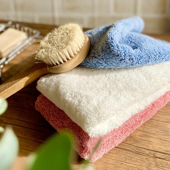 暑い季節のお風呂上がりは吸水力の高いふわふわタオルで、さらっと気持ちよく全身を拭いてサッパリ気分に。“バスタオル半分時代”は長い髪を包むのにも十分なサイズです。