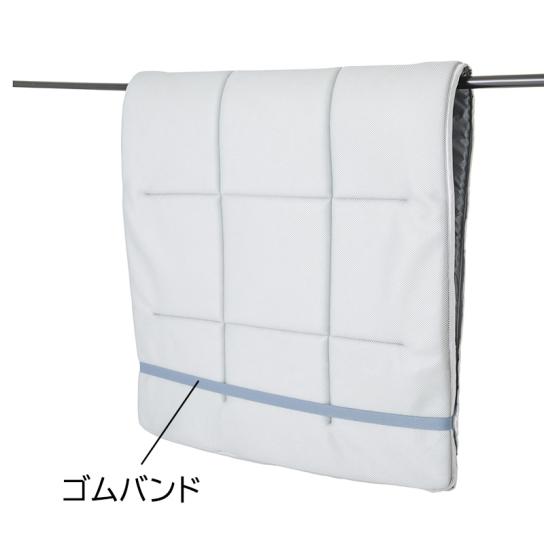 干す時はゴムバンドに布団を挟み込むことで、落ちたり飛んでしまうことを防げます。 -