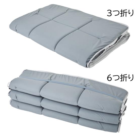 厚さ5cmとスリムなので、3つ折り・6つ折りにして、縦置き収納・隙間収納が可能。6つ折りで横置きにして部屋に置けば、ソファー代わりにも。