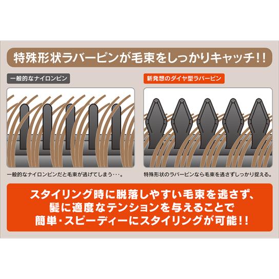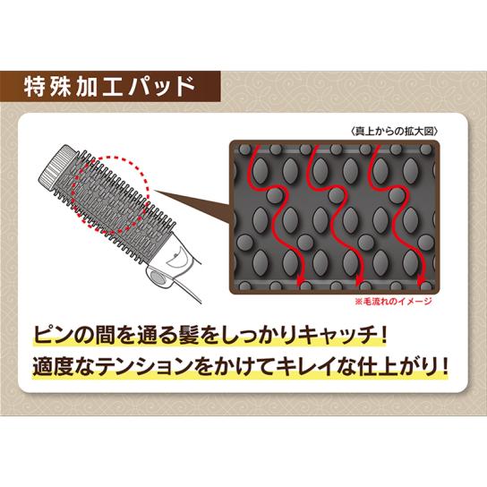 新たに「ダイヤ型ラバーピン」を採用し、髪のキャッチ力が向上。短い髪でも扱いやすくなりました。さらに、温度表示がデジタル化され、設定も7段階に増加。低温設定で髪質に合わせてやさしくスタイリングでき、ブラッシング習慣で寝ぐせ予防にも役立ち、まとまりある髪へと導きます。 -
