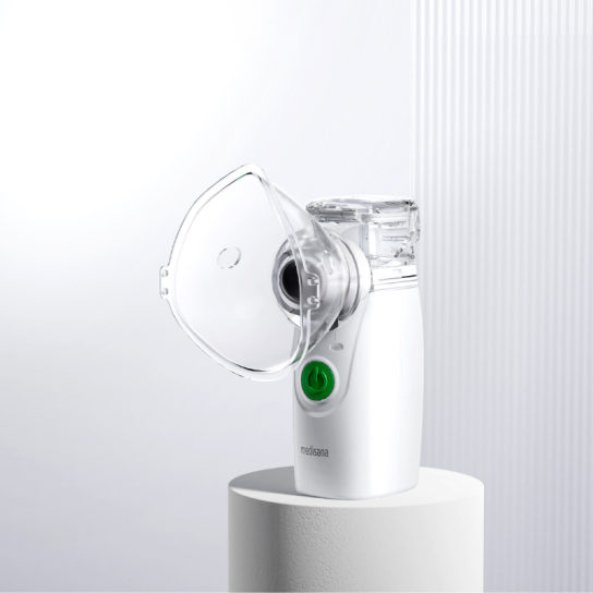 「メディサナ 家庭用超音波吸入器」は、ミストで鼻やのどを潤す機器です。水を注ぐだけで使用でき、マウスピースと吸入マスクの2種類のアタッチメントが付属しており、鼻・のど両方のケアにご使用いただけます。