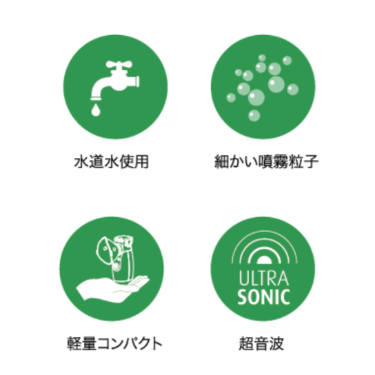 超音波振動によって生成される微細なミストが、のどの奥まで届くよう設計されています。のどの奥には線毛が存在し、異物の排出を助ける役割があります。乾燥すると機能が低下するため、潤いを保つことが重要です。うがいでは届きにくい部分にも、ミストが空気に乗って届く構造になっています。