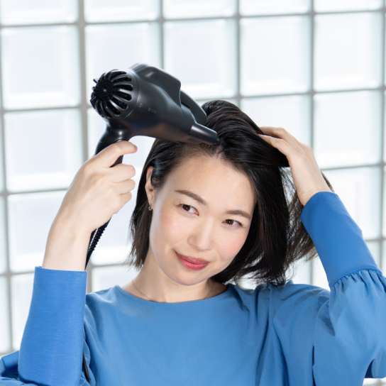 軽量設計で片手でも操作しやすいのもうれしいポイント。根元からしっかり乾かすことで、髪が立ち上がりやすく、スタイリングもスムーズに行えます。