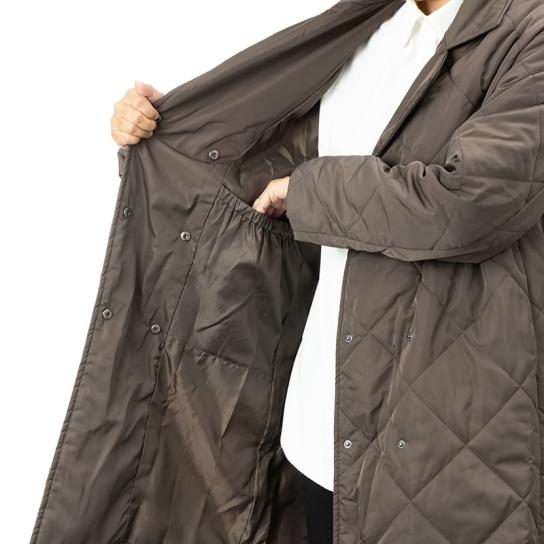 顔周りをすっきり見せるVライン、長財布も入る大きめポケット、ラグジュアリーな光沢生地を採用。さらに、はっ水加工で雨や雪にも対応。スタイルを崩さないスッキリシルエットで、厚手のニットとも相性抜群です。