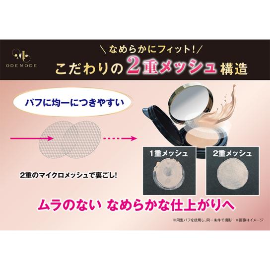 2重メッシュ構造により、ファンデーションを均一に塗布しやすく、ムラのない仕上がりをサポート。軽やかな着け心地で、肌にピタッと密着します。