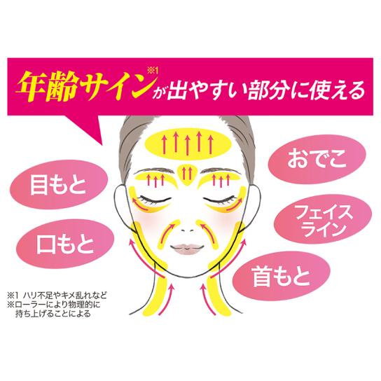 ②ローラーで顔全体、目元、口元、フェイスライン、首など気になる部分をマッサージするように引き上げながら塗布してください。