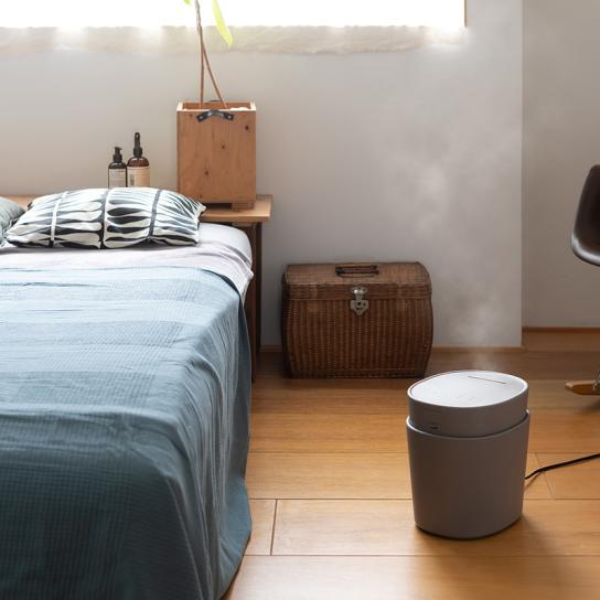 乾燥しやすい季節に、スチーム式でお部屋を快適な湿度に保つ加湿器。シンプルな構造でお手入れも簡単、安心設計で使いやすさを追求しました。