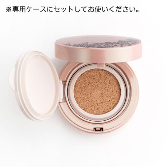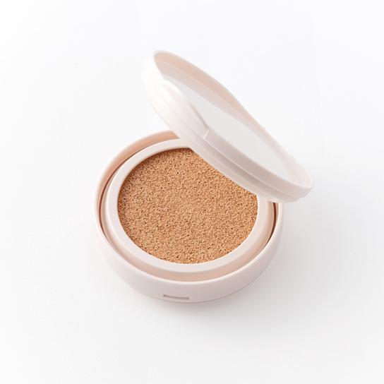 - 専用のパフをクッションファンデーションのスポンジ箇所に軽く押し当て適量をとります。顔全体にパッティング又は滑らすように均一になじませます。