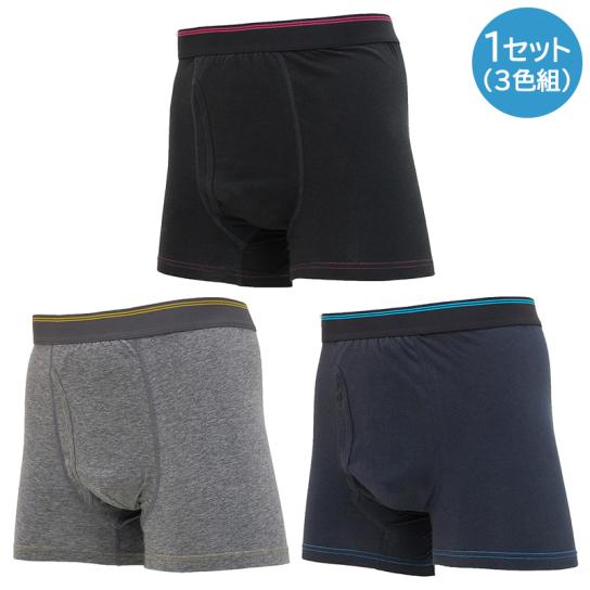 ごわつきにくい薄型3層構造で、見た目も一般的なボクサータイプのパンツ。年齢問わず着用いただけます。