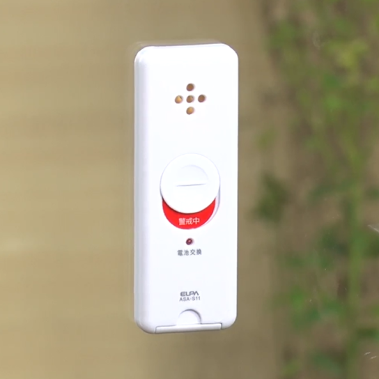 窓ガラスが割れたり、金属で叩かれた時に反応し、約90dBの警報音が約25秒間鳴り響きます。音で周囲に知らせ、侵入を防ぐ抑止力につながります。
