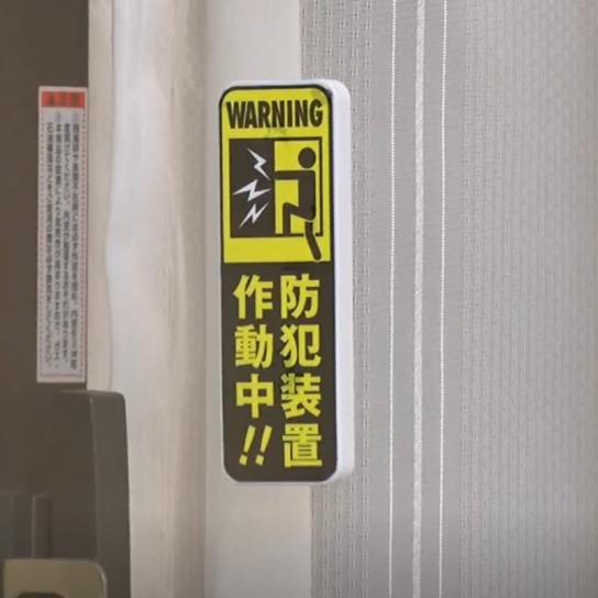 外側から「防犯装置作動中」の文字が見えるデザインで、侵入抑止にも役立ちます。スライドスイッチで警戒中と解除が一目でわかり、操作も簡単です。