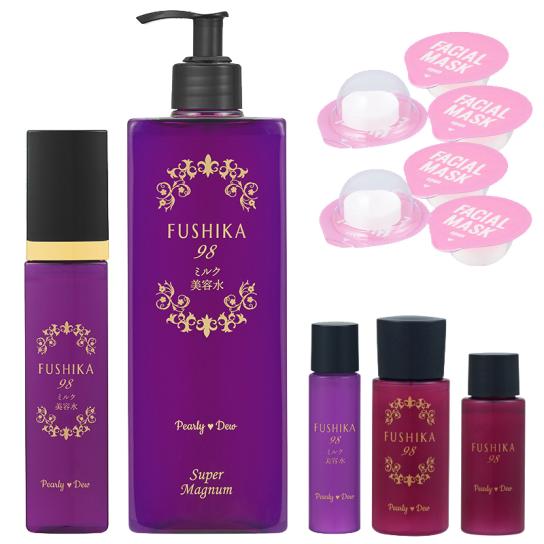 パーリーデュー史上最高峰FUSHIKAシリーズから、1品で化粧水・乳液・美容液の役割を果たす「FUSHIKAやわハリミルク美容水」。