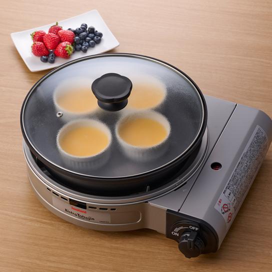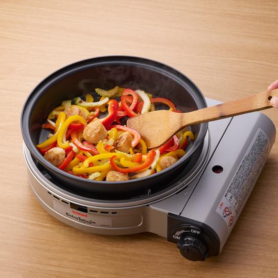 ガスならではの圧倒的な火力でムラなく美味しく調理することができるスグレモノ。さらに、直径26cm・深さが6cmのグリルパンがシリーズで唯一付属しており、焼く・蒸す・煮るなどバリエーション豊富に調理が可能です。