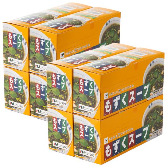 - しょう油、デキストリン、食塩、かつお節エキス、ゼラチン、米発酵調味料、砂糖、昆布エキス、椎茸エキスパウダー、でん粉、具(もずく、三つ葉、乾しいたけ、ごま、乾燥ねぎ)/調味料(アミノ酸等)、(原材料の一部に小麦・大豆を含む)