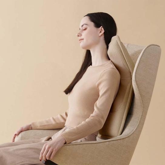 椅子に立てかけて首や肩をケア、寝転んで背中を広範囲にマッサージなど、シーンに合わせて使えます。くの字サスペンション構造により、座っても寝てもフィット感があります。