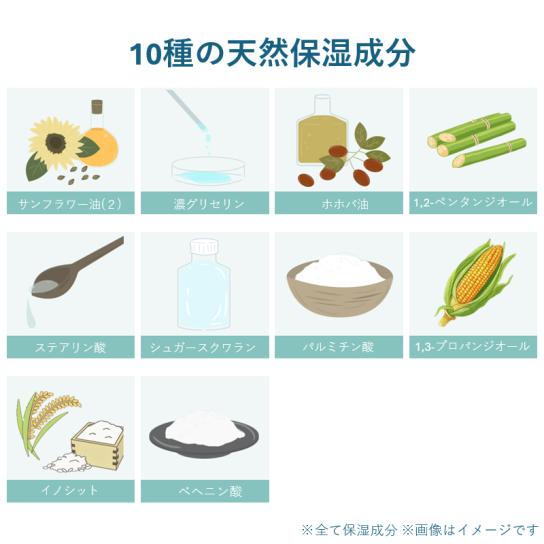保湿成分100%(※)、10種類を配合。独自のバランスで配合された成分が肌にすっとなじみ、なめらかなヴェールで包み込みます。