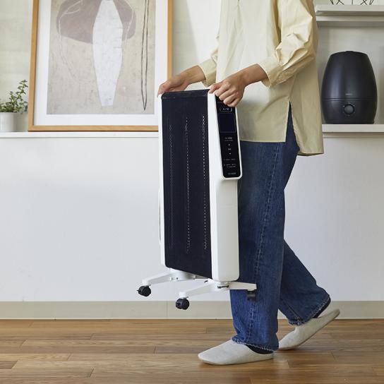 温風で部屋のホコリを巻き上げることもなく、乾燥しにくいのも嬉しいポイント。肌や喉にも優しい暖房器具です。