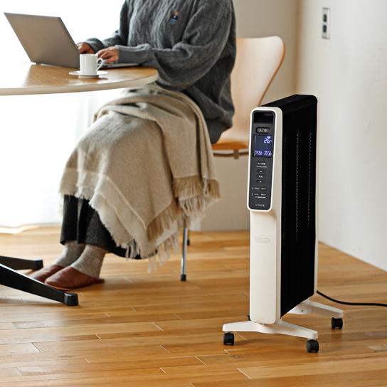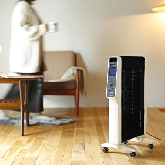 温風で部屋のホコリを巻き上げることもなく、乾燥しにくいのも嬉しいポイント。肌や喉にも優しい暖房器具です。