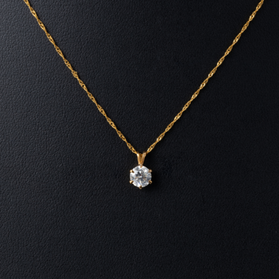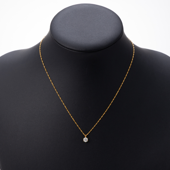ペンダント枠とチェーンには純金を使用。純金は99.9%以上の高純度のものを使用し、ダイヤモンドとの組み合わせることでペンダント全体の輝きを増してくれます。