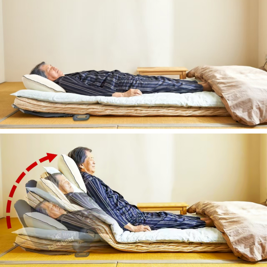 いつものお布団がリクライニング仕様に早変わり!布団の下に敷くことで、上体の角度調整ができるエアーマットです。