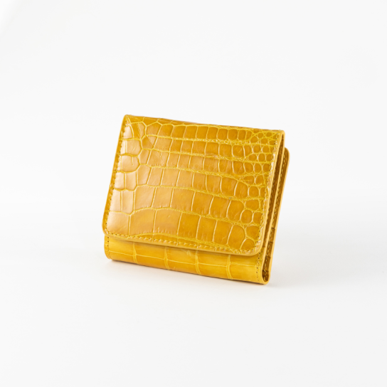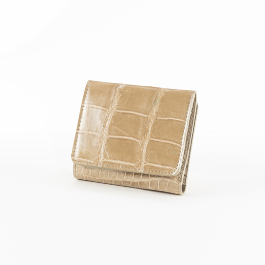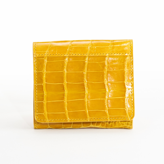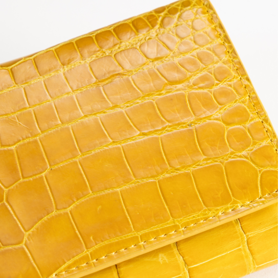 クロコダイル革の中でも特に希少な腹部(ベリー)部分を前面に使用。腑模様は個体ごとに異なるため、同じ模様の財布は作れず、唯一無二の表情を楽しめます。