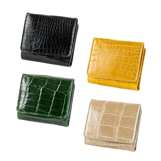 クロコダイル革の中でも特に希少な腹部(ベリー)部分を前面に使用。腑模様は個体ごとに異なるため、同じ模様の財布は作れず、唯一無二の表情を楽しめます。