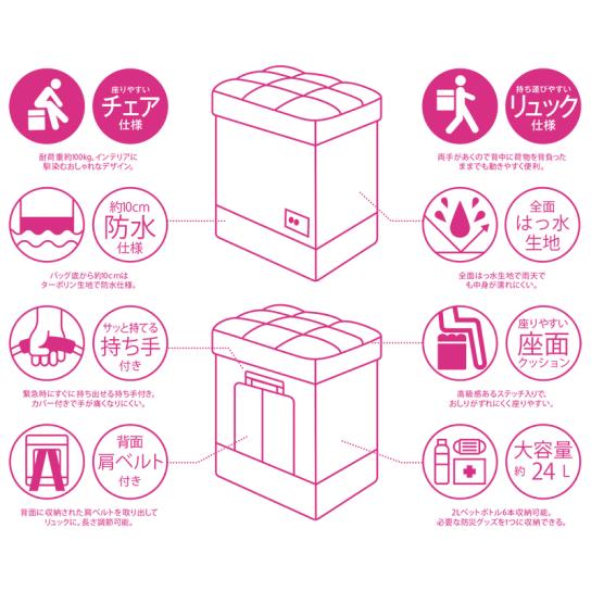 普段は玄関チェア、いざという時は持ち出せる防災バッグに変身!