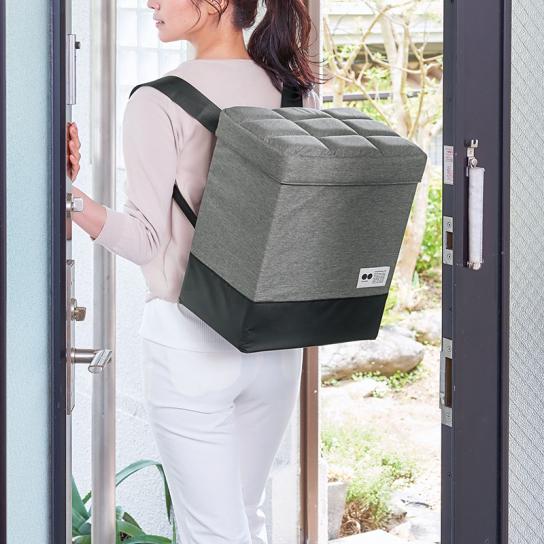 背面には肩ベルトを収納し、いざというときは持ち運びやすいリュックに早変わり。ベルトは長さ調節も可能です。