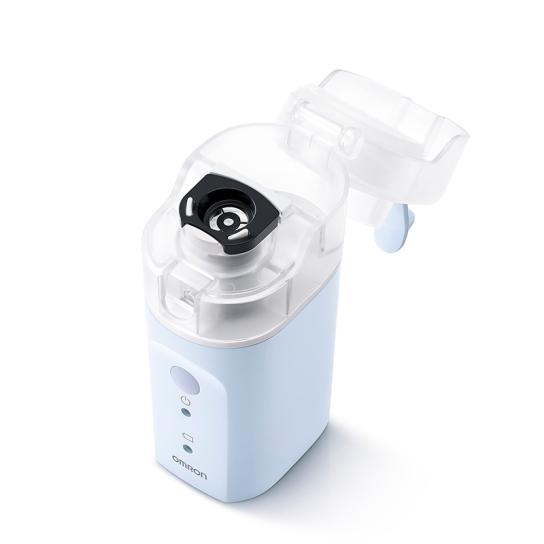 ディスポメッシュには目に見えない無数の穴があいており、このメッシュを通すことでのどや鼻の奥まで届く最適なサイズのミストに。オムロンならではの技術がつまったこの吸入器は、「鼻腔と咽喉の加湿、洗浄により不快感の改善」が期待できる管理医療機器*1です。